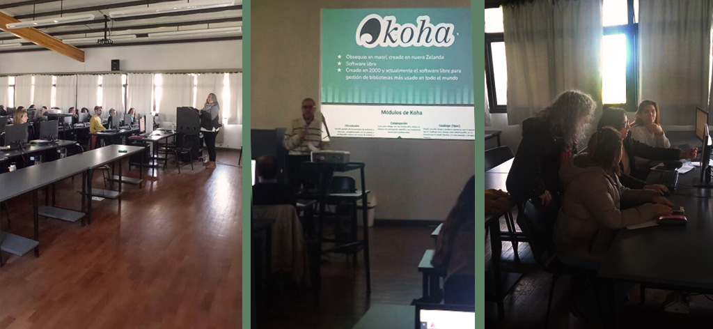 Taller de introducción al software KOHA, sistema integrado de gestión bibliotecaria. Dictado durante los meses de septiembre, octubre y noviembre, fueron 6 clases presenciales los días martes de 10 a 13 horas (18 horas en total). Dispuso de un espacio en el campus virtual de la UNLP (Aulas Formación) para centralizar allí materiales y actividades prácticas, aunque las clases fueron presenciales en el aula de computación de la Facultad de Arquitectura. Los docentes a cargo fueron la Lic. Mariana Pichinini y el Prof. Miguel Kiperszmid, quienes están desarrollando la implementación actual de Koha en la UNLP y la migración de registros bibliográficos de todas las bibliotecas, por lo que el espacio del curso sirvió también para discutir y consensuar criterios generales para la futura implementación del SIGB integrado. Total de participantes: 58 (actualmente en evaluación).